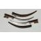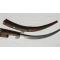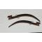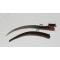 paire de poignards africains, lames incrustées de motifs, foureaux en bois décorés sur une face, poignées en bois avec insertions de filaments, Longueurs de ces pièces (poignard+ étui) 52 cm, lame seule 36 cm