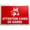plaque "ATTENTION CHIEN DE GARDE" ft 150 x 100 mm fond rouge
