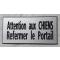 pancarte "Attention aux CHIENS Refermer le Portail" format 98 x 200 mm fond argent