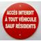 panneau ACCÈS INTERDIT À TOUT VÉHICULE SAUF RÉSIDENTS Ø 300 mm signalétique