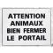 panneau "ATTENTION ANIMAUX BIEN FERMER LE PORTAIL"