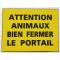 panneau "ATTENTION ANIMAUX BIEN FERMER LE PORTAIL"