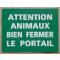 panneau "ATTENTION ANIMAUX BIEN FERMER LE PORTAIL"