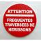 panneau ATTENTION FREQUENTES TRAVERSEES DE HERISSONS Ø 300 mm signalétique