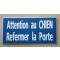 panneau "Attention au CHIEN Refermer la Porte" format 98 x 200 mm fond BLEU