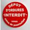 panneau DÉPOT D'ORDURES INTERDIT sous peine de poursuites Ø 150 mm