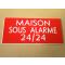 panneau "MAISON SOUS ALARME 24/24" format 98 x 200 mm fond rouge