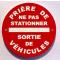 panneau PRIÈRE DE NE PAS STATIONNER SORTIE DE VÉHICULES Ø 150 mm