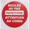 panneau ROULEZ AU PAS PROPRIÉTÉ PRIVÉE ATTENTION AU CHIEN Ø 200 mm signalétique