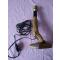 Petite lampe montée sur une patte de chevreuil . Objet ancien et original , travail soigné fait à l'époque par un naturaliste . L'abat jour est en laine , le support en bois . Le fil passe dans la patte et ressort à l'arrière . La douille est à baïonette (ce qui se faisait avant ) mais peu être facilement remplacée par une douille à vis . La hauteur toale est de 36 cm , celle de la patte est de 20 cm et le diamètre de l'abat-jour est de 20 cm à sa base . Le fil fait 1m90