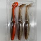 Quelquefois les carnassiers seront très sélectifs sur les tailles de leurres. Le brochet l’est moins mais le sandre et la perche peuvent déconcerter le pêcheur en attaquant sauvagement des leurres de 12 cm alors qu’ils recrachent des vifs de 7 cm et refusent des leurres de taille équivalente. Il faut tout essayer, du 3 pouces au 5 pouces en conditions normales pour monter encore plus gros en cas de crues en fleuve. Certains leurres ont un profil en ovale ou au contraire on des flancs très plats, le profil ovale donnera plus de rolling mais en verticale c’est plus la vibration du battoir que le scintillement du leurre qui semble déclencher les touches. Le coté massif d’un leurre peut être un plus en offrant à la vue du prédateur une bonne bouchée ainsi le rondouillard et célèbre One Up Shad de Sawamura reste un classique à utiliser en tous temps.