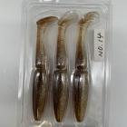 Le grub se veut plus discret avec un corps assez imposant poussant l’eau mais un flagelle qui ondule et qui crée des vibrations plus subtiles qui séduisent tous les carnassiers.