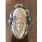 Pendentif amérindien - tête chef indien surmonté tête loup hurlant - pierres turquoises sur argent repoussé - 8,5cm x 5cm