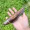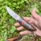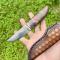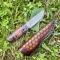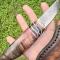 petit couteau artisanal acier damas insert molaire mammouth stabilisé bois stabilisé rouge #274