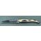 On ne peut pas dire qu'il soit léger mais il ne se fait pas sentir en poche(si tant est qu'on ait encore le droit d'avoir un couteau en poche).Son allure générale le démarque de ce qui se fait actuellement la mitre de tête en acier poli et le bois teinté bleu foncé ne sont pas étrangers évidemment à cet aspect. Les ajustages de platine ressort n'appellent aucun reproche .La lame se situe pile poil au milieu de son logement ce qui n'est pas toujours le cas et il coupe :à ce sujet la remarque précédente peut aussi s'appliquer .Donc il est parfait sauf que l'on ne peut pas l'ouvrir sans se casser les ongles ou se couper tellement le ressort est dur ;rien n'y fait même les gouttes d'huile.