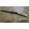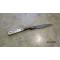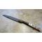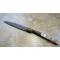 Beau modèle , fin , poignée façon ivoire mais matièr eplastique de sannées 60 / 70 . os. Lame acier (laissée jus) avec des traces oxydations et inscriptions. des deux côtés ."Vendetta Corse" + "Che la mia ferita séa mortale"... Manche avec tête de maure +fleurs.