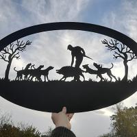 Le cerf est découpé dans du medium 3 mn d'épaisseur et ensuite peint à la main, il se fixe sur le pied grâce à des aimants.