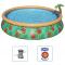 piscine gonflable Paradise Palms 457x84 cmAmusez-vous à jouer et à éclabousser dans votre propre cour avec cet ensemble de piscine gonflable Paradise Palms de la marque Bestway ! L'élégante piscine a des murs renforcés en Tritech. Il s'agit d'un matériau renforcé à 3 couches composé de PVC résistant laminé et d'une maille en polyester. Cette piscine gonflable peut être installée rapidement et facilement. Il suffit de poser la piscine sur une surface plane, de gonfler l'anneau supérieur et de remplir la piscine d'eau. Le palmier est gonflable et peut pulvériser de l'eau une fois connecté au tuyau d'arrosage. La vanne de vidange de contrôle de débit intégrée facilite la vidange de l'eau en attachant la vanne à un tuyau d'arrosage avec l'adaptateur inclus. La pompe à cartouche filtrante fait partie du système de circulation pour garder l'eau propre, empêcher les algues, les moisissures et autres bactéries microbiennes de se développer dans votre piscine. Cet appareil n'est pas destiné à être utilisé par des personnes (dont les enfants) dont les capacités physiques, sensorielles ou mentales sont réduites, ou qui manquent d'expérience et de connaissances, à moins qu'elles n'aient pu bénéficier d'une surveillance ou d'instructions concernant l'utilisation de l'appareil de la part d'une personne responsable de leur sécurité. Ce produit n'est pas un jouet. Ne laissez pas les enfants jouer avec l'appareil. GPSR