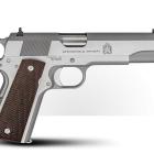 La gamme des pistolets automatiques Springfield Armory est large, il y en a pour tous les goûts ! Ce magnifique 1911 Mil-Spec Inox de catégorie B est à la fois sobre et clinquant avec sa finition inox qui contraste bien avec les plaquettes en bois cocobolo bien quadrillé et qui offrent un excellent grip. Le cadre et la glissière sont en acier forgé, très bien usiné. La fenêtre d'éjection des douilles est abaissée et évasée pour améliorer la fiabilité de l'arme lors de tirs à cadence soutenue.