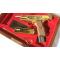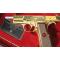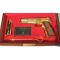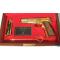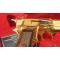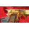 L'arme est entièrement plaqué OR 24 CARATS y compris son deuxième chargeur et sa baguette de nettoyage , le tout présenté dans un coffret en bois sur un fond de velour rouge avec son certificat d'authenticité.