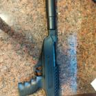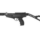 La crosse est fabriquée en polymère haute densité très solide. Le pistolet pèse 1,483 kg, c'est beaucoup et cela rassure sur la solidité de l'arme et le recours au métal pour les pièces majeures ! Le cylindre du piston et le début du canon qui sont visibles sont bronzés noir. Le reste du canon est manchonné, pour imiter un silencieux mais surtout pour améliorer la prise en main pour l'opération de rechargement pas bascule du canon.