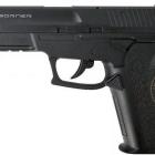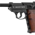 Il est plus vrai que nature avec ses 18 cm de longueur et ses 650 g sur la balance ! Ce pistolet W118 de Borner fonctionne avec une cartouche de CO2 placée dans la poignée pistolet de l'arme de poing. Le chargeur, attenant au logement de la sparklette de gaz contient 15 coups. Cette arme de loisir est chambrée en calibre 4,5 mm et tire des billes d'acier BB's très économique est assez précises. Le mode de fonctionnement semi-automatique est agréable et l'arme ressemble à une vraie grâce à sa culasse mobile confectionnée en métal.