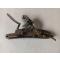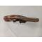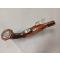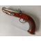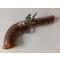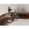 pistolet d'officier français à silex. Époque : Premier Empire. Calibre 16 mm. Canon à facettes, légèrement tromblonné à la bouche, gravé. Platine et chien à col rond. Montures et calotte hexagonale en fer gravé. Poignée en bois de noyer, partiellement quadrillée. Crosse en bois. Longueur : 23 cm, longueur du canon : 11,5 cm. Très bon état. Autres photos et informations sur demande.