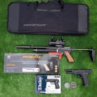 Ce pistolet est dédié aux tireurs sportifs pour l’entrainement et la compétition à 10 mètres. Cette arme à air comprimé est très bien finie. Ce pistolet de type PCP est équipé d’un cylindre dans lequel vous pourrez compresser de l’air qui servira à propulser les diabolos de calibre 4,5 mm. Le système de valve et de régulateur délivre toujours la même quantité d’air pour propulser le diabolo. Il est livré dans une mallette avec deux embouts de remplissage pour pompe, compresseur ou bouteille de plongée. Le long canon de 240 mm guide les projectiles à la perfection.
