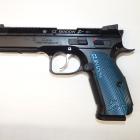 Il s'agit d'un CZ SHADOW 2 avec des caractéristiques particulières. La carcasse a reçu un traitement CERAKOTE TUNGSTEN GREY du plus bel effet. Le traitement CERAKOTE ayant été réalisé par AEROGRAPHE FOCKEUR, un spécialiste des traitements de surface et personnalisation d'armes basé près d'Étampes et dont la qualité de ses travaux est désormais une référence dans le milieu de l'armement.