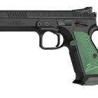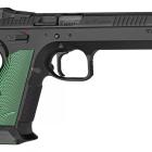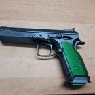 Après les plaquettes de poignée de couleur bleu du Shadow 2 SA, celles de couleur orange du Shadow… Orange, voici que la couleur verte fait son apparition sur cette très belle arme de tir sportif qu'est le pistolet TS 2 Racing Green. Il porte bien son nom de Racing car tout est étudié sur cette arme catégorie B pour vous permettre de tirer encore plus vite. L'ergonomie de la poignée pistolet offre un très bon contrôle de l'arme. La géométrie de la carcasse et de la glissière a été repensé afin de rendre les opérations de manipulation et armement encore plus fluide. Les différentes stries de préhension offrent un armement rapide et des opérations de contrôle de chambre aisées. Le traitement de surface protège l'arme contre les rayures.