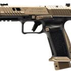 Fabriquées avec soin en Turquie, les armes de poing Canik sont désormais renommées et gagnent de nombreuses parts de marché dans le domaine civil et le tir sportif ainsi que dans le domaine militaire. Les modèles de pistolets Canik sont nombreux et cette nouveauté ne passe pas inaperçue grâce à une couleur étonnante et un look ravageur ! Ce modèle TTI Combat a été créé en collaboration avec la société Taran Tactical Innovation. Taran Butler, le créateur de cette société, est né à Hollywood, mais a grandi dans un ranch et s’est rapidement mis au tir sportif. Il a remporté de très nombreuses compétitions dans des disciplines de tir diverses. Il entraine et forme également des acteurs au maniement des armes à feu. Ce passionné a travaillé sur cette version du TTI Combat en améliorant notamment la prise en main.
