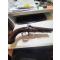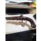 pistolet de venerie au primitif à silex transformé a capsule 2 canons en calibre 15 mm tre propre avec quelques arabesques gravé dessus longueur des canons 16 cm longueur de larmes 30 cm,baguette fer ,platine marqué d'un côté GiBory gauche et de l'autre côté laigle. Les chiens tiennent bien les 2 crâns le droit très puissant le deuxième le gauche plus doux me il frappe bien toutes les garnitures en fer .le bois très sain pas de vers sauf une enturesous la platine gauche et une fêlure sous la platine droite l'ensemble très propre sortie de grenier mais tout fonctionnel très bien