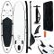 planches SUP gonflables Noir et blancCe stand up paddle est idéal pour le surf ou la promenade et la pratique en eau vive grâce à son confort et sa stabilité. Doté de valves spéciales à vis haute pression, il est facile et rapide à gonfler et à dégonfler. Deux ailerons préfixés et un aileron amovible sont durables pour résister aux pressions du pagayage. Un sac de transport pratique est inclus pour un transport facile et rapide. Cette planche SUP est conçue avec un niveau de courbe parfait, ce qui augmente sa rigidité pour une conduite plus stable. Cette planche glisse sans effort dans les eaux plates et glisse en douceur dans les vagues. La planche SUP gonflable est résistante aux perforations et aux UV et résiste aux conditions nautiques extrêmes. Veuillez noter que ceci est conçu pour les adultes. GPSR