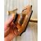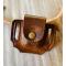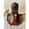 la pochette est collé et cousu mains aux points de sellier et teinté chêne moyen patiné