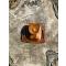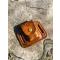 le pochette est collée et cousu mains aux points de sellier et teintée fauve patiné marbré