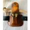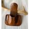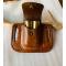 la pochette est collé et cousu mains aux points de sellier et teintée fauve patiné marbré