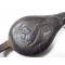 poire a plomb en cuir rigide décors lièvre faisan perdrix ancien année 1900
