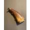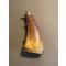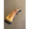 voici une poire à poudre qui nous arrive de la fin du XIX ° siècle,   elle est en corne applatie à chaud  ,  le talon en laiton , le ressort fonctionne ,