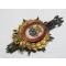 Insigne de boutonnière dit « baromètre » en argent et vermeil, figurant un faisceau de licteur, au centre soleil rayonnant chargé d'un rameau de feuilles de chêne et de laurier, centre émaillé aux armes de la ville de Versailles, dans le listel rouge « Conseil Municipal - Versailles », fixation par spatule, avec poinçon d'argenture.