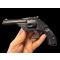 revolver de fabrication belge de très bon niveau. 6 coups calibre 320. bonne mécanique. sécurité sur la carcasse côté gauche. poinçon ELG dans ovale SANS couronne. garde pratiquement plus de 95/100 de son bronzage noir brillant .. monté avec un jeux de plaquette smith and wesson. neuve. à ajuster légèrement.