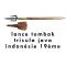 De telles têtes de lance étaient produites par des kris-smiths (empus) – un rôle qui combinait la forge et le mysticisme indonésien. Les lames étaient forgées à des moments propices et selon de nombreux rituels. Les lances étaient destinées à être exposées et utilisées lors de cérémonies dans les palais (kratons) du centre de Java. Comme la plupart des krises, les dents de cette trisula sont également ondulées (luks). Le Trisula est un type de tombak (lance) populaire à Java, mais les anciens comme celui-ci sont rares.