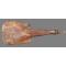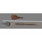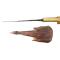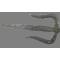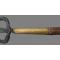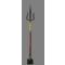 Cette élégante tête de lance de cérémonie à trois branches, connue sous le nom de trisula ou trisular, est en acier damas avec pamor, obtenue en martelant et en pliant des feuilles de fer en fusion jusqu'à ce que la lame résultante ait un aspect fin et arrosé. De tels dessins pamor confèrent à la trisula des pouvoirs magiques. Le pamor sur cet exemple est particulièrement frappant. Le pamor s'appelle kulit semangka. En bahassa, ce fer de lance s'appelle Gada, l'arme du seigneur Wishnu et des gardes du temple du Dvarapala.