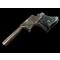 pistolet un coup calibre 22 short de chez remington. marquages remington ilion patent 1861 sur la carcasse. belle patine uniforme sur l ensemble du pistolet. plaquettes bois canon avec rayures oxydées en creux. rare.