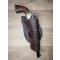 cuir tannage vegetal 3.5 mm d epaisseur ,teinté walnut (noisette) puis graissé en photo avec un saa 1873 de 4.75 pouces (il reste 4 cm avant que le canon ne dépasse de l etui) puis avec un remington 1858 7.5 pouces