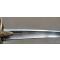 Modèle à la chasseur. Poignée recouverte de galuchat. Monture en laiton ciselé doré. Calotte à longue queue avec armoiries de comte. Garde à trois branches et deux oreillons en navette. Quillon courbe vers la poite. Lame courbe à dos arrondi, contre-tranchant et pans creux, gravée à l'acide de rinceaux feuillagés trophées d'armes et marquée "Knecht in Solingen" Fourreau en tôle de fer à deux larges bracelets et anneau en suite.