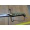 croisiere laiton à oreillons , calotte laiton avec chainette ( origine ?) fusée recouverte de velour vert usé avec filigranne ; lame à forte courbure en bon état , aucun marquage , pas de fourreau