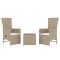 salon de jardin 3 pcs beige poly rotin et acierCe salon de jardin, avec un design élégant et contemporain, sera un excellent choix pour vous détendre dans le jardin. Matériau durable : la résine tressée, également connue sous le nom de rotin poly, résiste aux intempéries et est facile à nettoyer. Elle reste belle à l'extérieur pendant une longue période. Elle offre une excellente qualité, commodité et un aspect esthétique.Cadre stable : l'acier est un matériau exceptionnellement dur et résistant. Il offre robustesse et stabilité.Fonction d'inclinaison : les chaises de jardin de cet ensemble de mobilier de jardin sont spécialement conçues avec une fonction d'inclinaison afin que vous puissiez régler le dossier et le repose-pied selon votre confort.Expérience de siège confortable : avec les coussins de siège bien rembourrés, les chaises sont très confortables.Dessus de table pratique : le dessus en verre trempé est parfait pour placer ou afficher vos divers objets essentiels. Il est beau en apparence et facile à nettoyer. Remarque :Pour que vos meubles d'extérieur restent beaux, nous vous recommandons de les protéger avec une housse imperméable. Bon à savoir :Pour faciliter au maximum le montage, chaque produit est livré avec des instructions. Maximum 110 kg par siège. Soyez conscient du risque de feu ouvert et d'autres sources de forte chaleur à proximité de l'appareil.