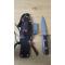 solide couteau de chasse, lame 4 mm + fourreau cuir + pierre à éguiser