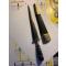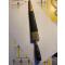 stylet corse , longueur 29 cm , largeur 2,8 garde ,virole et mitre en laiton ,en empilement de corne claire et noire et rndelles laiton ,fourreau en cuir noir et laiton ,