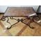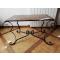 Vends table basse en fer forgé à la main par un artisan. Plateau en faïence qui peut être remplacé par un plateau en verre car il y a un cadre qui fait le tour pour supporter la plaque avec la faïence longueur 90 centimètres largeur 55 centimètres hauteur 54 centimètres